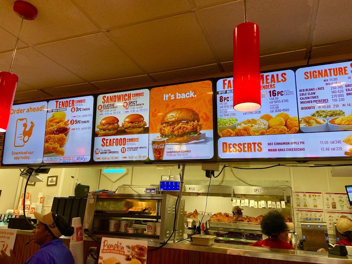 Popeyes Louisiana Kitchen brings the bold flavors of Cajun and Southern cooking to every dish. Their menu shines with the Classic Chicken Sandwich, a perfectly fried chicken breast filet layered with crisp pickles and creamy mayo on a buttery bun—a timeless favorite. For those seeking a kick, the Spicy Chicken Sandwich spices things up with fiery mayo, delivering a memorable, mouth-tingling experience. Complementing the chicken, Popeyes offers delightful desserts like the Strawberry Cream Cheese Pie, a crispy fried treat filled with sweet strawberry and cream cheese, and the heartwarming Cinnamon Apple Pie filled with gooey cinnamon-apple goodness.